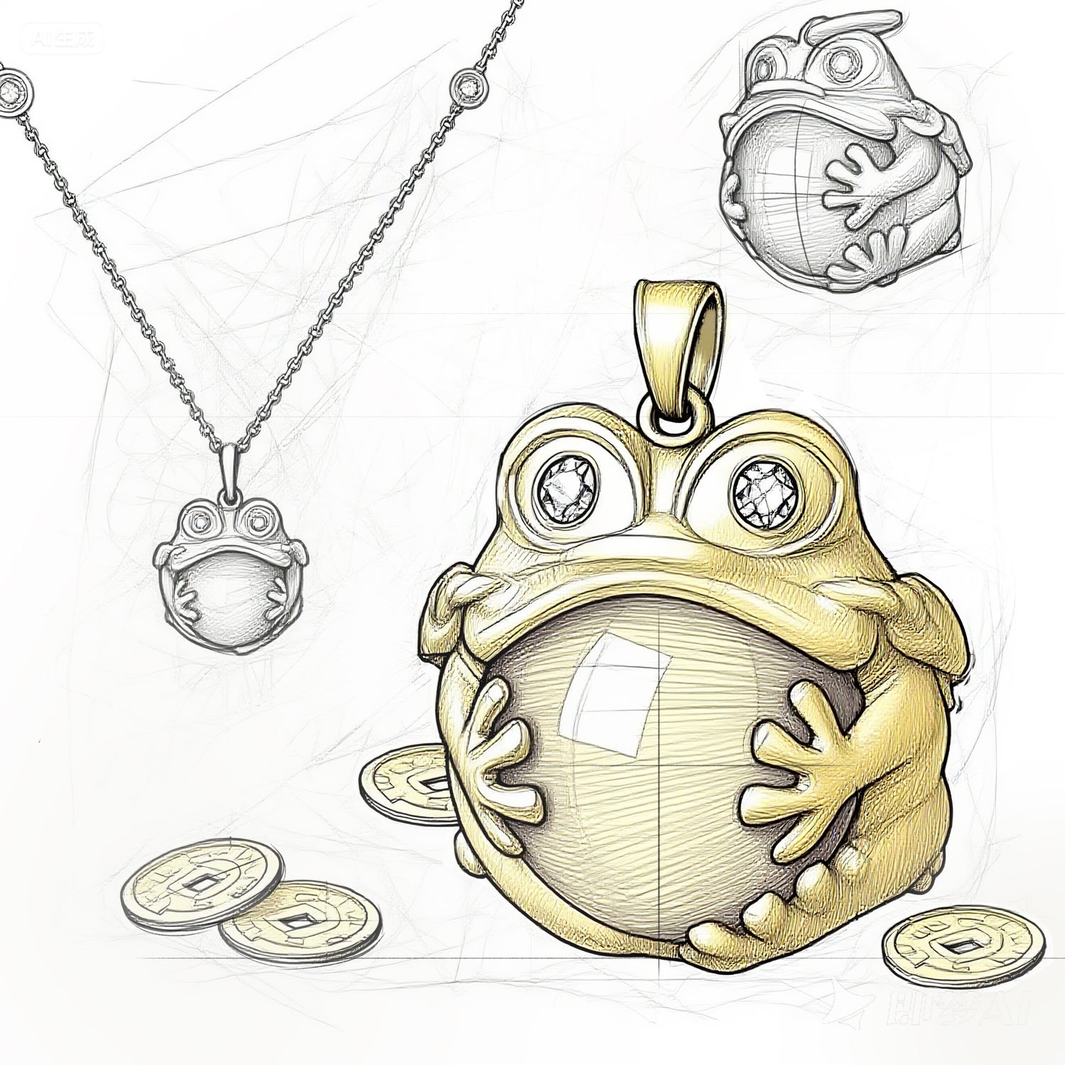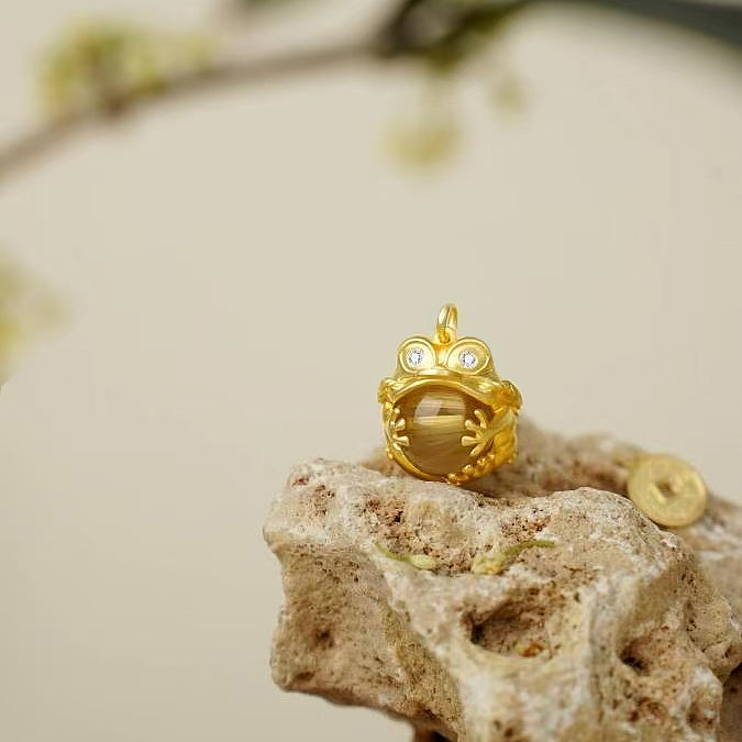 Dieser Anhänger ist vom daoistischen Glückstier „dreibeinige Goldkröte“ (San Zu Jin Chan) inspiriert. Er verbindet traditionelle Symbole wie Bagua, den Großen Bären (Beidou), Feueraugen und Geldmünzenketten und steht für Wohlstand, Schutz und Erfolg.