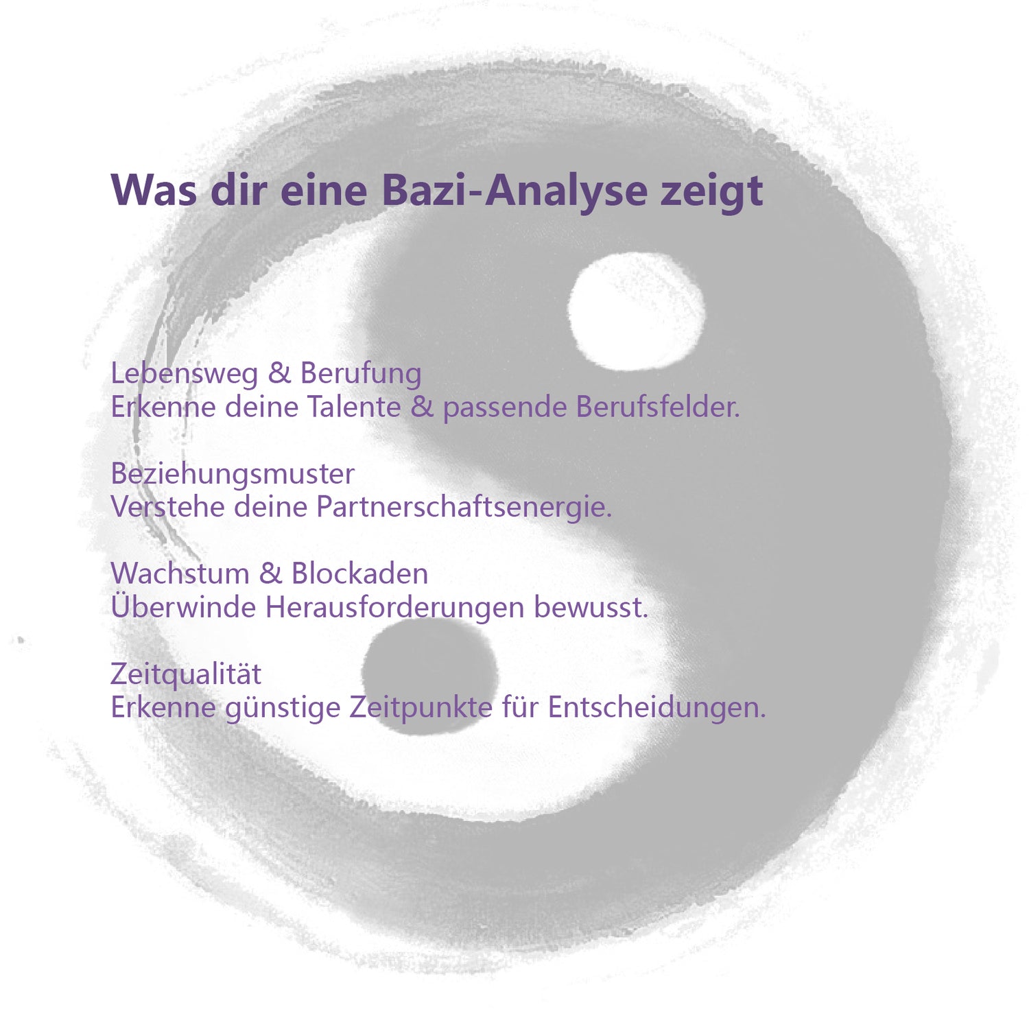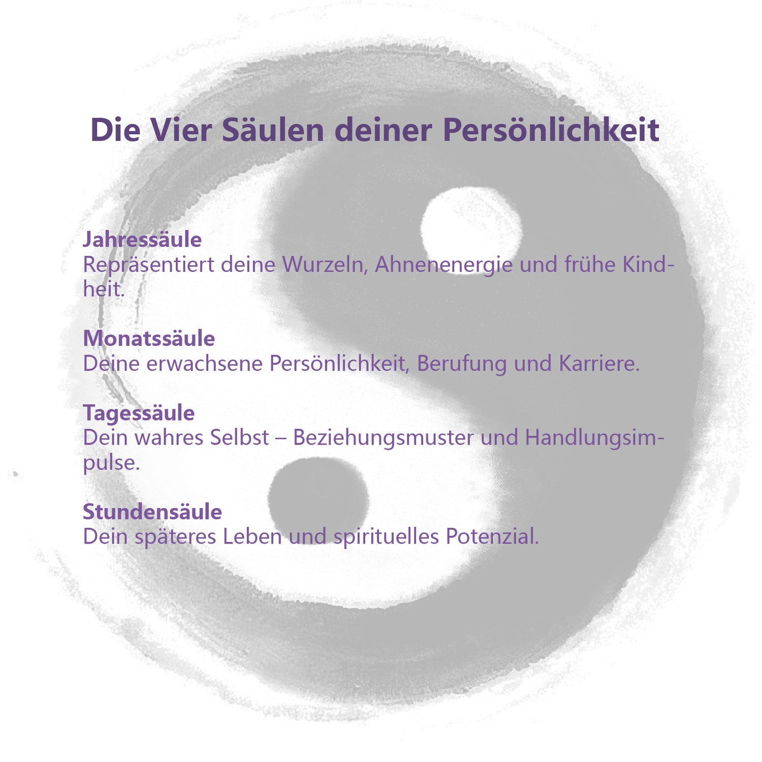 Bazi (八字), auch bekannt als “Die Vier Säulen des Schicksals”, ist eine 3000 Jahre alte chinesische Schicksalsanalyse-Methode.Basierend auf deinem exakten Geburtsdatum und -zeit berechnen wir deine persönlichen Himmelsstämme (天干) und Erdzweige (地支), die deinen energetischen Fingerabdruck bilden.